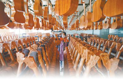 这是今年娜塔莎乐器公司发往日本客户的第三批货,大约300把。“每把吉他最后的质检流程需要20分钟左右,我们要确保每一把吉他的质量。”公司行政主管韦林飞说。2019年,受当地招商引资政策的吸引,娜塔莎乐器公司落户贵州遵义市正安县。如今,公司已建成一个颇有名气的自主品牌。
